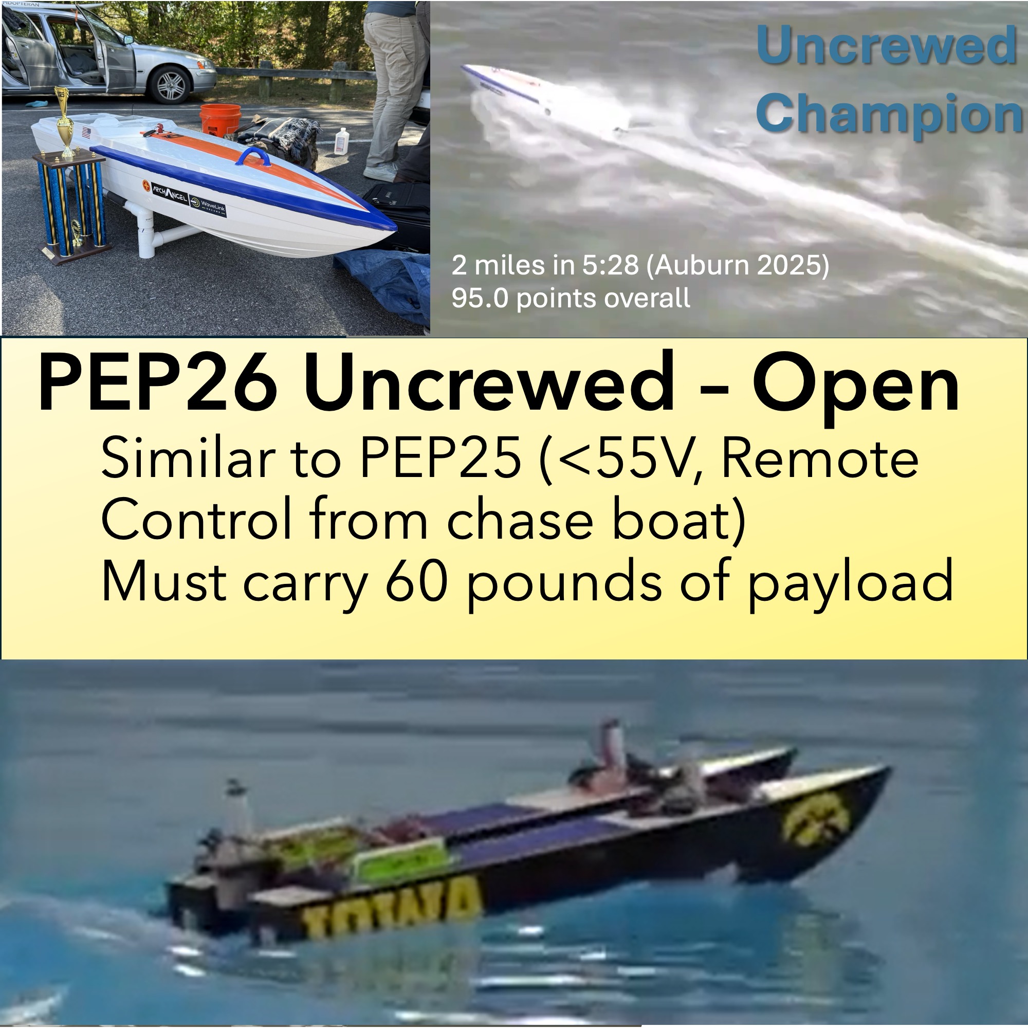 Uncrewed - Open: Similar to PEP25, but teams must carry 60 pounds of