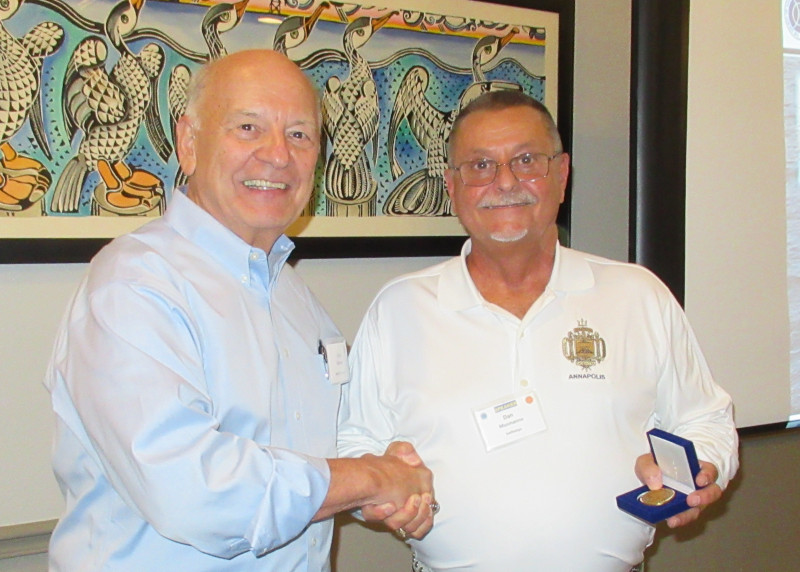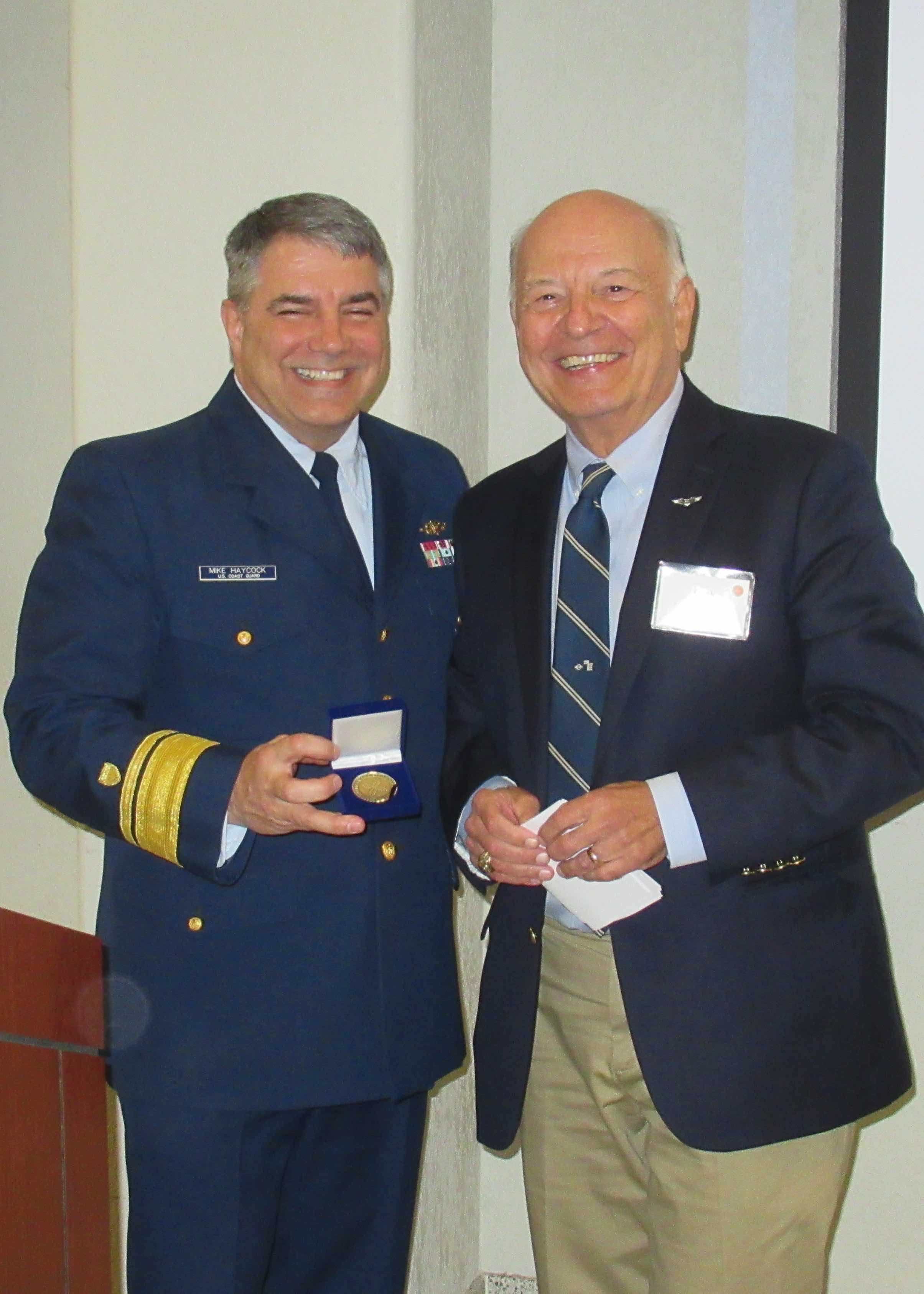 ASNE Central Gulf Coast Council President Frank Colangelo presents RADM Haycock the ASNE CGC Section Coin in recognition of his presentation.