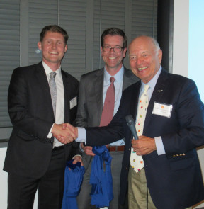 ASNE Central Gulf Coast Council President Frank Colangelo presents RADM Haycock the ASNE CGC Section Coin in recognition of his presentation.