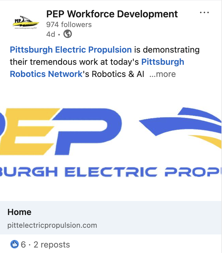 people interested in learning and sharing about electric propulsion. Check out some fancy PEP merch.