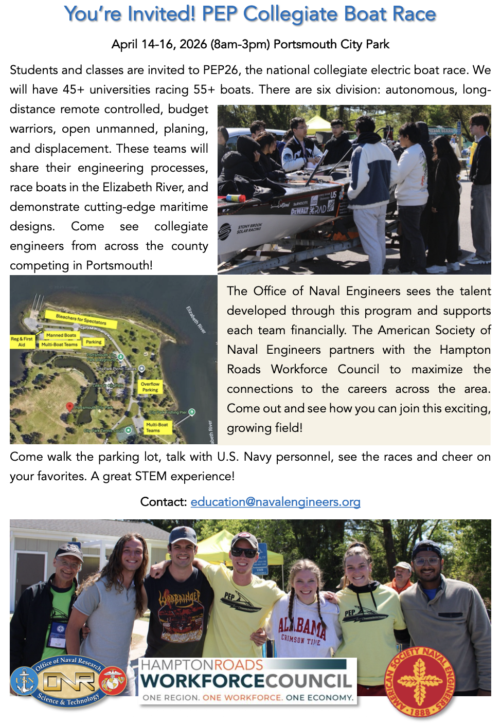 - Portsmouth, VA: October 29 (boat testing in Portsmouth, reception Norfolk)